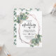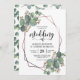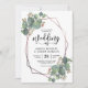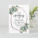 This is a beautiful wedding invitation featuring eucalyptus and rose gold geometric frame design. A matching background with eucalyptus leaves pattern is included.