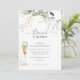 Beauty and fun with this brunch & bubbly Bridal Shower champagne luncheon invitation designed with whispy soft eucalyptus branches gilded gold leaves and a minty green on the back of the card. Easily customise with the bride-to-be name and other important information.