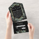 Eucalyptus Gold Frame Black Wedding with RSVP All In One Invitation