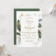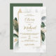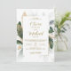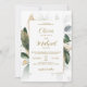 A sophisticated wedding invitation featuring elegant eucalyptus greenery paired with delicate gold leaves,
