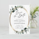 Eucalyptus Gold Modern Calligraphy QR Code White and Sage Wedding Save the Date... Our luxe botanical Save the Date card features a faux gold metallic oval frame embellished with dusty green and emerald-hued eucalyptus leaves creating a natural looking border for the announcement text within. The sage green back of the card contains your wedding website information and an example QR code graphic you can replace by simply entering your own wedding website URL on the template. All example text on both sides of the card (aside from the calligraphy elements) can be easily revised with your own details on the same personalisation template.