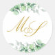 Eucalyptus Gold Monogram Wedding Classic Round Sticker