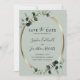Eucalyptus Gold Metallic QR Code Sage Wedding Save the Date... Our sage green luxe botanical Save the Date card features a gold metallic oval frame embellished with emerald-hued eucalyptus leaves creating a natural looking border for the announcement text within. The back of the card contains your wedding website information and an example QR code template you can replace simply by typing in your wedding website URL All example text on both sides of the card - and the updated QR code - can be easily revised with your own details on the personalisation template.