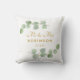 Elegant delicate eucalyptus foliage wedding or anniversary Mr and Mrs personalised pillow design. Personalise with name and date. Easy to customise. Get yours today!