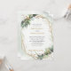 This wedding invitation blends natural elegance with refined charm, featuring a soft botanical design of green eucalyptus foliage and shimmering gold accents that frame the layout with grace. The colour palette evokes a serene, upscale garden atmosphere, while the mix of classic serif and flowing script fonts adds a sense of romance and rustic charm. The overall composition feels balanced and welcoming, perfect for a celebration set in a vineyard or similarly picturesque venue, where tradition meets warmth and joy. Easy to personalise with your own information.