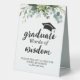 Eucalyptus Graduation Party Guest Advice Table Tent Sign display. Family and friends provide written words of wisdom for the new graduate. Perfect creative party activity and keepsake. Easy to customise.