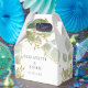 Elegant wedding favor box adorned with watercolor eucalyptus leaves and delicate gold floral accents. The green, gold, and ivory color scheme makes it ideal for rustic chic, garden, or modern botanical weddings. Personalize it with your names and date for a cohesive finishing touch to your celebration.