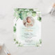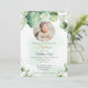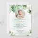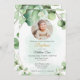 This beautiful baptism or christening invitation features a natural background with green eucalyptus and a gold cross in the centre. The back of the card is green eucalyptus.