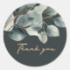 Add a touch of elegance to your thank you gifts or wedding favours with this stunning eucalyptus foliage “Thank You” sticker. The design features delicate eucalyptus leaves with subtle gold accents set against a dark, luxurious green background. The words “Thank you” are written in a stylish handwritten script in soft gold, creating a perfect blend of sophistication and warmth. Whether you’re sealing envelopes or enhancing favour packaging, this sticker adds a graceful and modern finishing touch to any occasion.