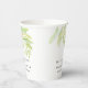 Beautiful eucalyptus leaves and flowers green watercolor wedding paper cups. Personalise with your bride and groom's name and wedding date. Part of the eucalyptus green watercolor wedding collection. © Original watercolor hand painted art and design by Sarah Trett for www.mylittleedenweddings.com