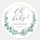 Seal your invitation envelopes or favours with these classic "oh baby!" stickers. Featuring "oh baby!", event name and date framed by a watercolor wreath of eucalyptus and greenery. Coordinating collection found in the Adore Paper Co. Zazzle Shop.