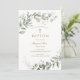 Baptism and Christening invitation featuring a frame of watercolor eucalyptus and greenery. Customize with your information. Click "click to customize further" to change the font style, size or color.
