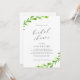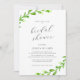 A simple bridal shower design featuring watercolor eucalyptus leaves in the top left and bottom right-hand corners. Your shower details appear in the middle in elegant script lettering and classic typography.
