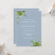 This elegant eucalyptus greenery botanical dusty blue wedding invitation can be personalised with your information in chic typography with your monogram on the reverse. Designed by Thisisnotme©