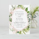 Greenery Eucalyptus Botanical and Rose Gold Geometric Watercolor Spring Wedding Invitations on White background - includes beautiful and elegant script typography with modern botanical leaves and greenery for the special Wedding day celebration.