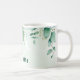 A green, white watercolored background. Decorated with eucalyptus greenery foliage and woodland fern. Personalise and add a name.