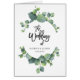 Silver dollar eucalyptus frame, folded wedding program card. Template features lines for a detailed list of the wedding party, order of service list and thank you note.