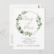 This elegant and customisable Change of Plans card features an geometric gold frame adorned with moody watercolor eucalyptus leaves & has been paired with a whimsical calligraphy and a classy serif font in gold and grey, with a post card back. To make advanced changes, please select "Click to customise further" option under Personalise this template.
