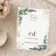 Eucalyptus greenery and faux gold foliage. Elegant white background. Personalise and add your business logo, monogram initials, name and a text.