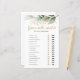 The design on the party game is attractive and very sturdy. It is made from heavy card stock. It is larger than it appears on line. Very happy with this product. The lettering on the this wedding game is large and clear. No need to wear glasses to read the questions.