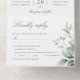 Beautiful all in one wedding invitation featuring watercolor eucalyptus and gold leaves.
