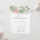Beautiful bridal luncheon invitation featuring pink floral watercolor eucalyptus and gold leaves.