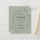 A eucalyptus coloured background. Decorated with greenery and an oval frame. Personalise and add your names and details.