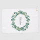 White background, decorated with an eucalyptus greenery wreath. Personalise and add your name, black hand lettered style script.