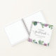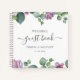 Modern eucalyptus purple and green floral script handwriting wedding guest book for family and guests to sign.