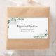 This elegant return address label with its watercolor eucalyptus leaves forms part of a co-ordinating wedding suite.