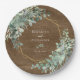 Eucalyptus Greenery Rustic Wood Geometric Wedding Paper Plate