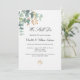 A chic white background. Decorated with green watercolored eucalyptus leaves, sprigs, greenery and a faux gold sprig. Personalise and add your names and ceremony details. Black letters.