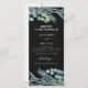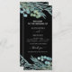 Eucalyptus Greenery Succulent Botanical Watercolor Spring Wedding Program Cards with Black Backgrounds - includes beautiful and elegant script typography with modern botanical leaves and greenery for the special Wedding day celebration.