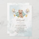 Simply create a cute woodland animal theme baby shower budget invitation with this template featuring a cute bear, balloons, buntings and leafy eucalyptus botanical succulent.