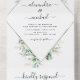 Eucalyptus Greenery Botanical and Green and Gold Geometric Watercolor Spring Wedding Invitations on White background for Spring, Summer, Winter, Fall, Autumn - includes beautiful and elegant script typography with modern botanical leaves and greenery for the special Wedding day celebration.