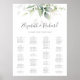Beautiful alphabetical wedding seating chart sign featuring watercolor eucalyptus and gold leaves.