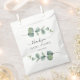 Treat your guests to a stylish and heartfelt gesture with this eucalyptus greenery wedding favour bag. Featuring delicate watercolor eucalyptus accents, elegant script and serif fonts, and personalised text, this bag is perfect for wrapping cookies, candy, or small gifts. A beautiful fit for rustic, garden, or minimalist weddings, it adds a cohesive, botanical touch to your reception tables or send-off favours.
