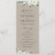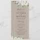 Modern chic watercolor white floral eucalyptus greenery and gold colour border frame on kraft paper background, with trendy script, elegant and stylish, great wedding programs for rustic wedding, botanical wedding and beach wedding all year round.