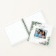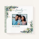 Personalise and add your own family photo. A green frame decorated with eucalyptus greenery and faux gold foliage. Elegant white background. Add your family name and year.