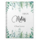 An elegant white background. Decorated with watercolored eucalyptus greenery and woodland ferns. Add a year and your name. Text: Notes