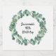 Eucalyptus greenery wreath name elegant birthday sparkling wine label