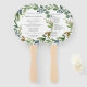 Our garden chic wedding program fan features your ceremony details in elegant lettering, encircled by a wreath of watercolor eucalyptus leaves and green foliage. Reverse side lists the members of your wedding party with easily editable text fields. Coordinates with our Eucalyptus Wreath wedding invitation collection for summer, spring, outdoor or garden weddings. Use the template fields to add your ceremony and bridal party information, and then click "Customise It" to reposition elements if needed. Need help? Contact me via the "Ask this Designer" link on this page.