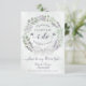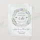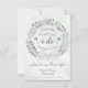 This beautiful card is designed as a special way to invite your niece or any special girl in your life to be a flower girl at your wedding. It features a beautiful hand painted watercolor wreath of eucalyptus leaves, greenery, and lavender flowers in shades of sage green and purple. The text reads: I can't say "I Do" without you! Please be my Flower Girl. There is space for her name, your signature, as well as the names of the couple and wedding date. The back features a marbled dusty blue background with a bouquet tied with a white satin bow.
