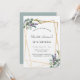 A stylish white background on the front. Decorated with eucalyptus and lavender florals. A faux gold geometric frame. Personalise and add a name and details.