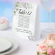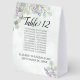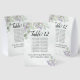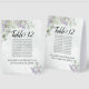 These beautiful table tent signs will make it easy for your guests to find their tables at your wedding reception. The elegant design features hand painted watercolor eucalyptus leaves and lavender flowers on a steel blue background with lacy script calligraphy and space for the names of 10 guests. There is also space for the names of the couple and the wedding date.