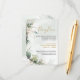 Enclose a card in your wedding invitation for Reception details. This design blends natural elegance with refined charm, featuring a soft botanical design of green eucalyptus foliage and shimmering gold accents that frame the layout with grace. The colour palette evokes a serene, upscale garden atmosphere, while the mix of classic serif and flowing script fonts adds a sense of romance and rustic charm. The overall composition feels balanced and welcoming, perfect for a celebration set in a vineyard or similarly picturesque venue, where tradition meets warmth and joy.