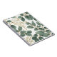 This design features eucalyptus leaves and branches on a white background. The design has a flat, graphic style and a soft green and gold colour scheme. The pattern is composed of leaves and branches arranged in a different direction.