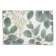 This design features eucalyptus leaves and branches on a white background. The design has a flat, graphic style and a soft green and gold colour scheme. The pattern is composed of leaves and branches arranged in a different direction.