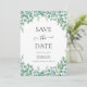 Elegant eucalyptus wedding save-the-date card featuring a timeless botanical style. Perfect for rustic, minimalist, or nature-inspired weddings. Personalize with names and the wedding date.