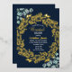 Navy blue, eucalyptus, wreath, greenery, rustic watercolor, gold silver foil, frame, bridal shower, real foil invitation. Beautiful, elegant, modern bridal shower invitation.